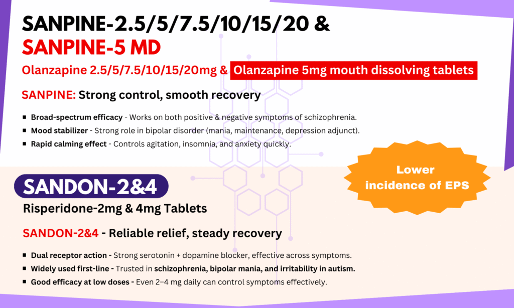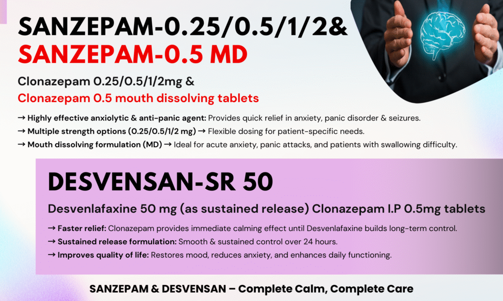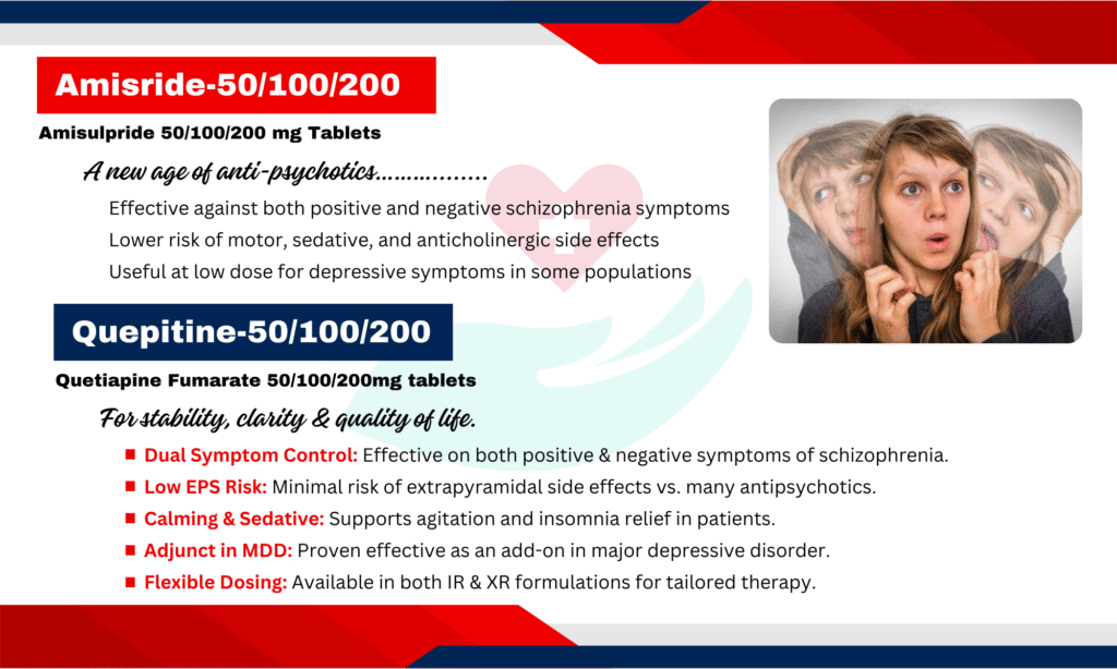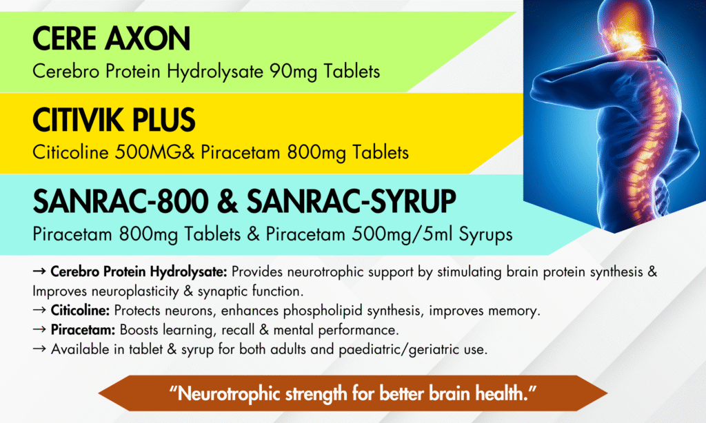 Neuro Psychiatry products are designed to support mental health and neurological well-being by addressing conditions such as depression, anxiety, schizophrenia, epilepsy, bipolar disorder, and sleep disturbances. These medicines work by balancing brain chemicals, improving mood, stabilizing emotions, and enhancing overall cognitive health. They play a vital role in improving patients’ quality of life by bringing relief, stability, and hope.