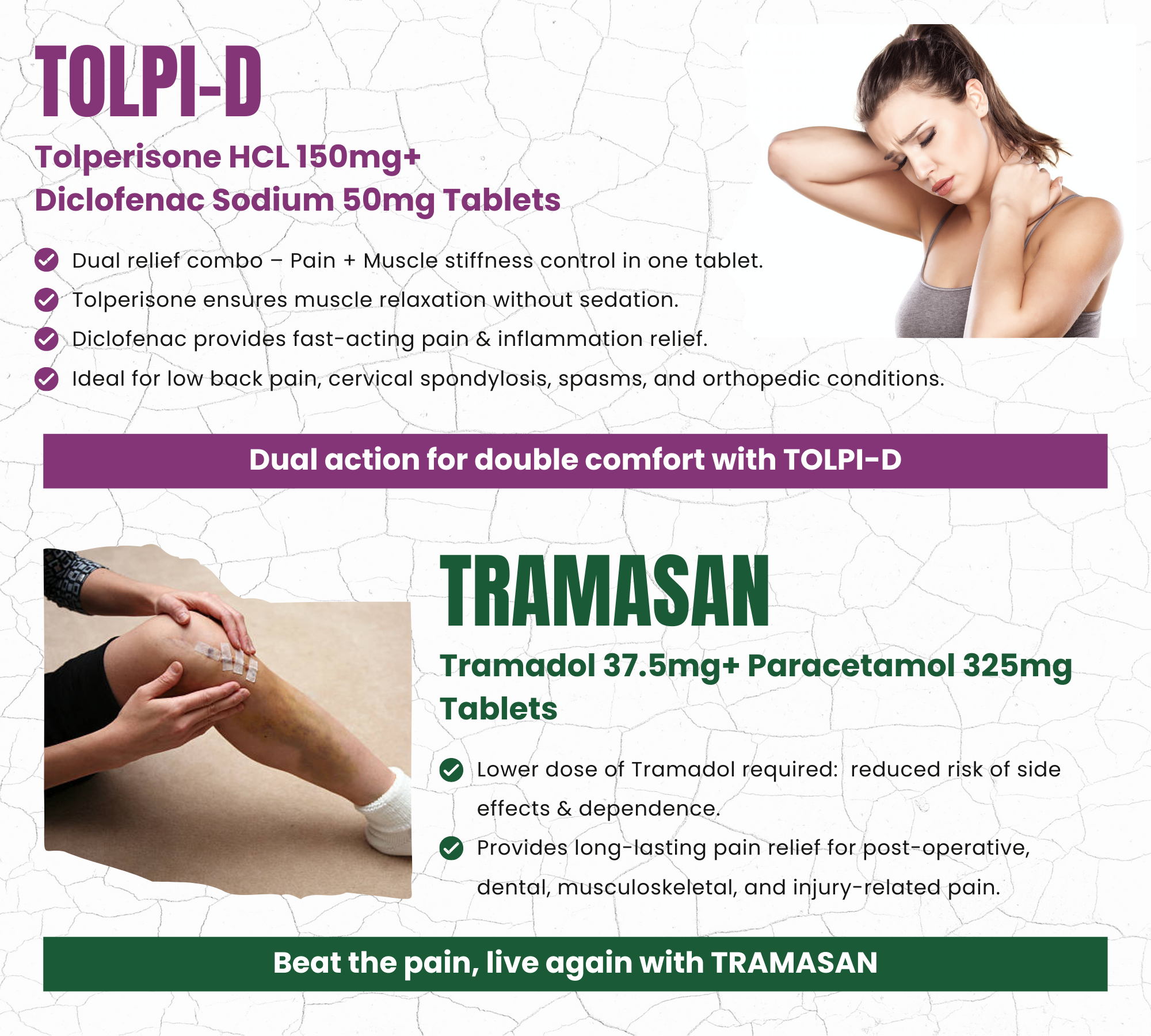 Pain can be overwhelming, but effective relief should not be complicated. Our range of pain management medicines is designed to provide quick, safe, and lasting comfort. Whether it’s acute pain, chronic conditions, or post-operative care, our trusted formulations ensure patients can regain mobility, strength, and quality of life. With proven efficacy and reliable safety, we bring you solutions that heal beyond pain.